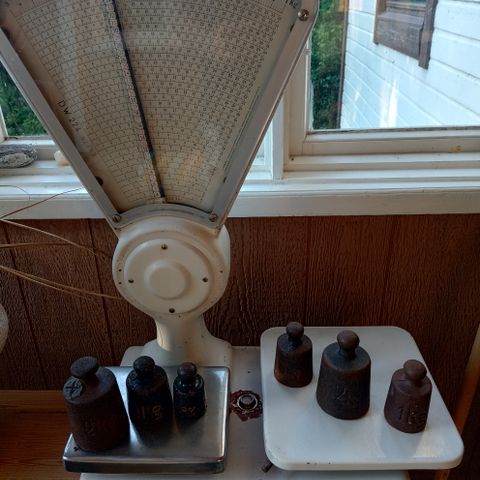 Kuvan mukainen, Suomalainen vaaka (Lahden Vaaka Oy) kruunattu viimeksi 1970, punnukset mukaan, 200g, 100g, 2x50g, 20g, 2x10g, 5g, 2g.ovat messinkiä.