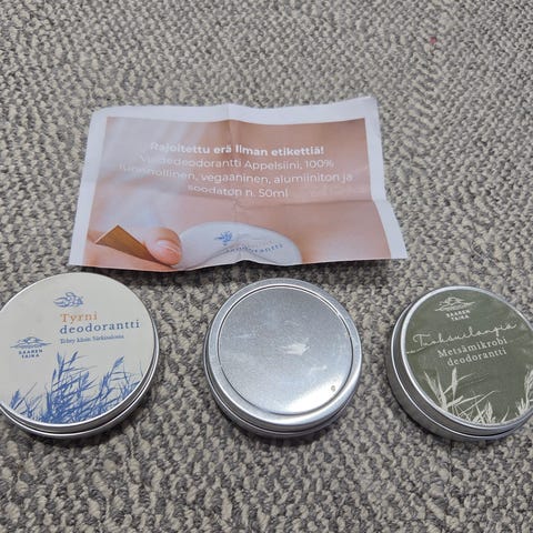 Avaamattomat Saaren taian ihonhoituotteet, joista kaikki hajusteettomia. Ovh yhteensä 100 euroa.