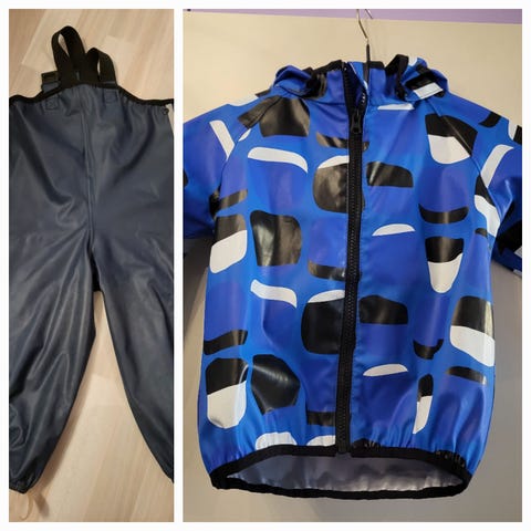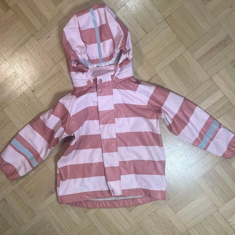 Reiman sadetakki koko 92. Keltainen raitakuosi. Omaan silmään uuden veroisessa kunnossa, yhdellä lapsella ollut käytössä.