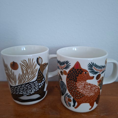Myynnissä kultaisilla yksityiskohdilla varustettu Ketunmarja ja Peura-mukisetti (Winter 2023 erikoismukit) kahden mukin paketti hintaan 42e. Mukeja on myynnissä 2 pakettia. Mukit ovat 2,5dl ja myyn vain koko pakkauksen (2 mukia) kerrallaan, en yksittäin. Nouto Askolasta tai postitus +8,90e. MMM, koiratalous. Katsothan muutkin ilmoitukseni:)