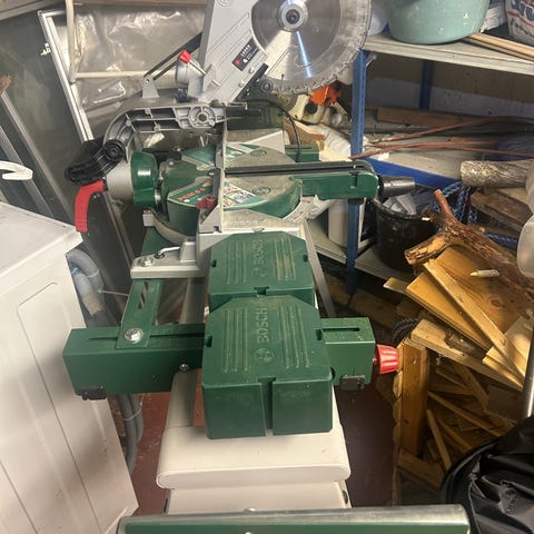 Bosch jiirisaha liukutoiminnolla. Saha on tarkoitettu puun ja vastaavien materiaalien tarkkaan katkaisuun ja jiirileikkauksiin. Koneessa on liukukisko, jonka avulla voidaan sahata leveämpiä kappaleita. Sahauslinjaa ohjaa kääntyvä ja kallistuva pöytä, jossa asteikko kulmien säätöä varten. Soveltuu esimerkiksi listojen, lautojen ja muiden puutavaroiden katkaisuun ja jiiraukseen työpajassa tai rakennustyömaalla.