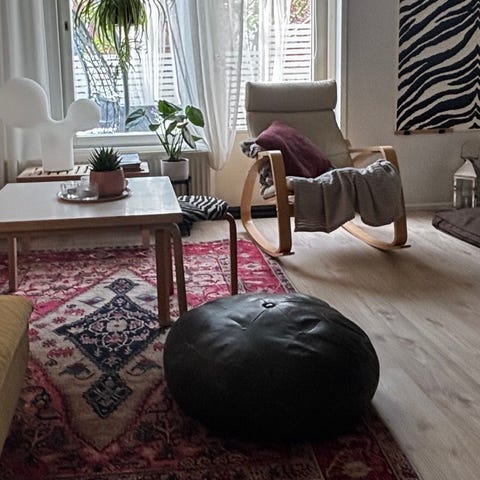 Rahissa toinen puoli nahkaa? ja toinen mokkaa? Väri tummempi kuin kuvassa. Koko l. 78cm k. 39cm