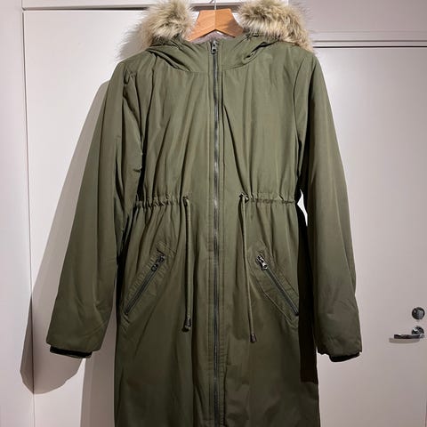 Kantotakki talveen. Voi käyttää myös tavallisena takkina. Hupun karvan saa otettua pois. Ruosteenpunainen. Koko M. Eläintalous. Hyväkuntoinen mutta kaapissa rypistynyt.