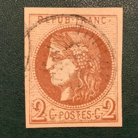 Ranska 1870 - Bordeauxin julkaisu, pari nro 43B GC-leimattuna, 1. luokan.