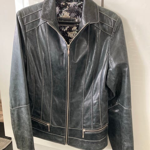 Siisti musta puolipitkä takki. Punokset kauluksessa ja hihoissa.