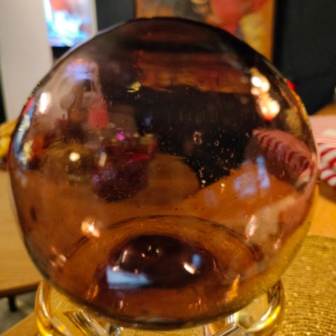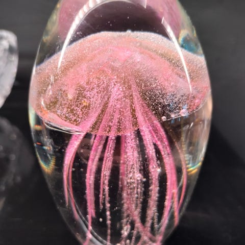 Korkeus 11 cm leveys 6 cm ovalinmuotoinen lasipallo lasikoriste melko painava .haku lasi .kirjepaino .ehjä erittäin kaunis .postimaksu pakettina 8.90 tai nouto pohjassa signeeraus josta vaikea saada selvää ensimmäinen kirjain on V ja lopuksi 06.