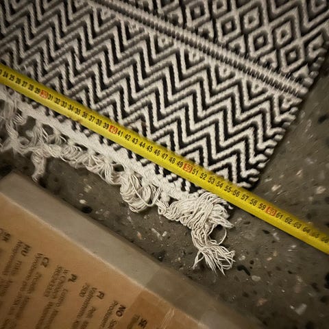 Kevyt, pieni matto. Pesua kaipaa, joskin allergiakodista joten ei eläimiä tms.