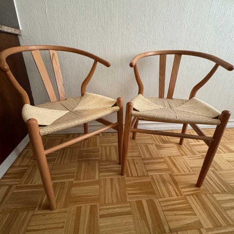 Kuten kuvista näkyy, tuoleissa oli ostettaessa maalipinnassa puutteita ja osassa tuoleista jalkojen kiinnitys oli vaikeaa valmistuspuutteiden vuoksi. Pienellä korjauksella kuitenkin saa todnäk ihan hyvän setin.