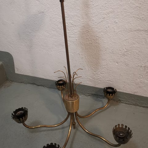 Kotimainen , vanha , Idman , seinälampetti . Puusälevarjostin . Messinki/kristalli.