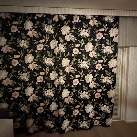 Myydään siistit, kahdessa sinisen sävyssä (vaalea ja tumma) oleva pimentävät verhot. Kangas estää valon tehokkaasti, joten huone pimenee täysin eikä ulkoa näy sisään. Loistava valinta makuuhuoneeseen, tai tilaan, jossa tarvitaan pimennystä.