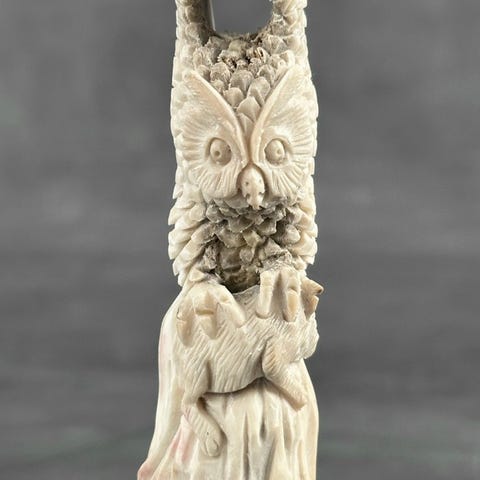 Kaiverrus, Stunning wolf head carving from deer antler on custom stand - 18 cm