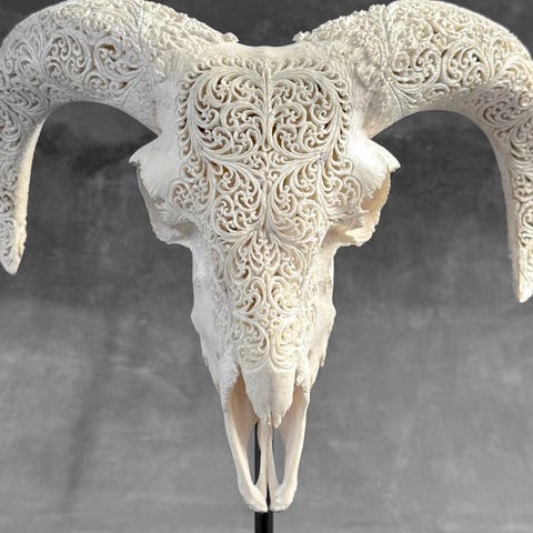 EI VARAUSTA – C – Täysin kaiverrettu harmaa pässin pää kustomoidulla tel