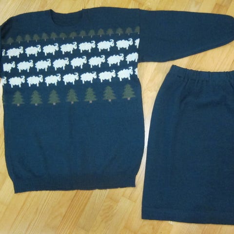 Pitkä villainen neule, jossa monivärinen kirjoneulekuvio yläosassa ja helmassa. Materiaalina villa. Sopii käytettäväksi esimerkiksi mekkona tai pitkänä neulepaitana viileämpiin päiviin.