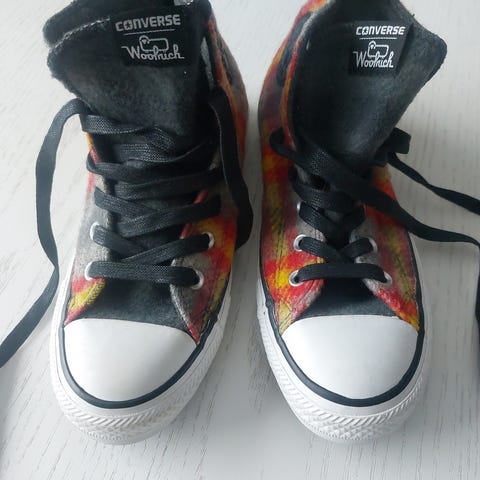 Upeat tennarit Woolrichilta, kooltaan 7,5/40,5, istuvat enemmän kooltaan 39 ja ovat kapeat. Katso mitat.Uusi ilman laatikkoaEntinen myymälän esittelymalli, jossa on hieman käytön jälkiä/värjäytymistä. Katso kuvat.Väri voi hieman poiketa kuvien väristä.MittojaKokonaispituus: 28 cmMaximileveys nenässä: 9,5 cmMaksimileveys korvassa: 8 cmVakuutettu lähetetty seurantatunnuksella.