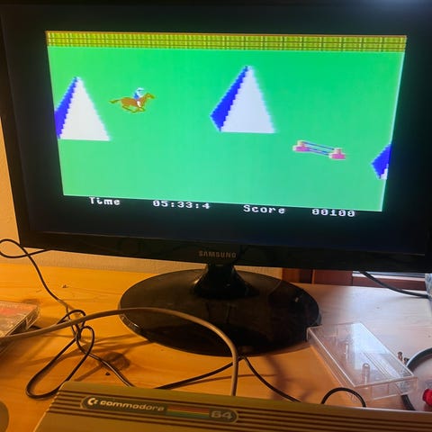 Commodore 64 Space Ace -pelikokoelma . Juuri testattu ja hyvin toimii. Pelit Zynaps , Venom Strikes Back , Northstar ja Cybernoid.