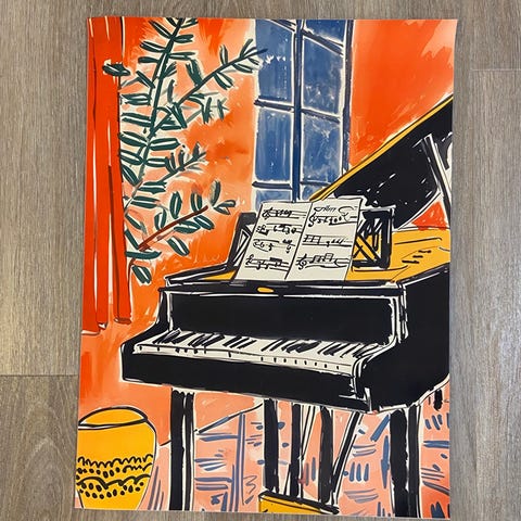 Hakusanat: pianojuliste, piano taide, musiikkijuliste, taidejuliste, seinätaide, sisustusjuliste, moderni sisustus, art print, musiikki taulu, flyygeli juliste, värikäs juliste, olohuoneen sisustus, työhuone sisustus, design juliste
