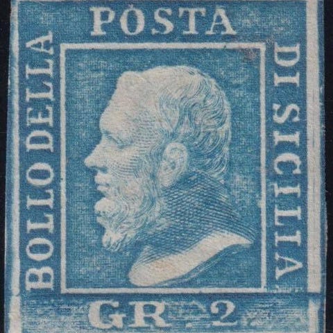 Italian antiikkivaltiot - Sisilia 1864 - 2 gr. III^ Taulu sininen PA pos.69 Sass
