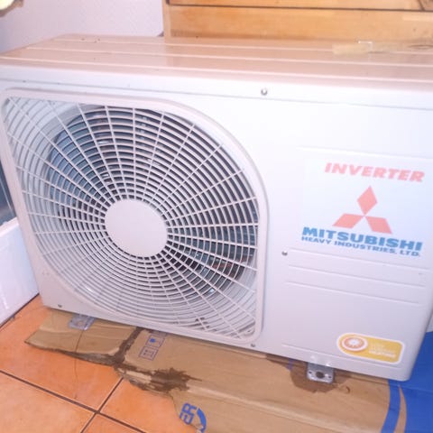 Mitsubishi Electric MSZ-FH25VE ilmalämpöpumppu. Sisältää ulkoyksikön, seinälle asennettavan sisäyksikön ja kaukosäätimen.