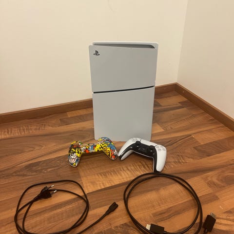 9kk vanha Digitaalinen Playstation 5 konsoli, jossa itse asennetut punamustat tarrat. Mukana God of war teemainen ohjain( 1kk vanha) ja laturi. Hyvässä kunnossa koko setti. Mukana pleikkarin virtapiuha ja hdmi johto!
