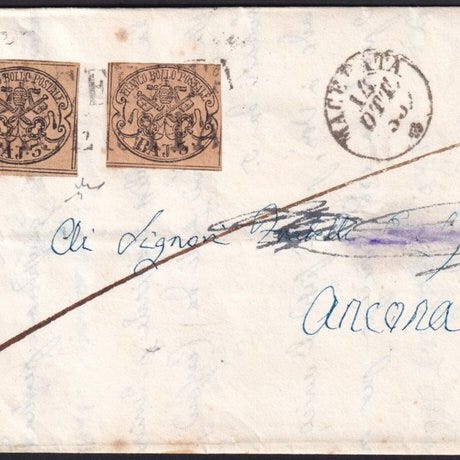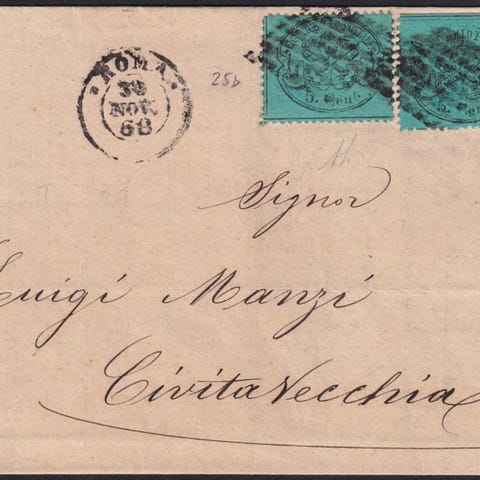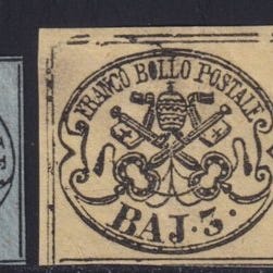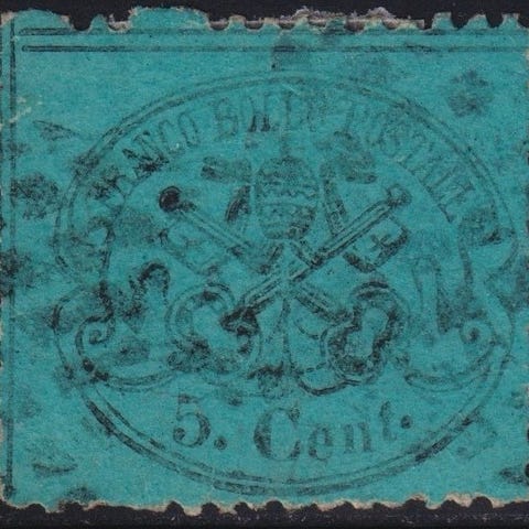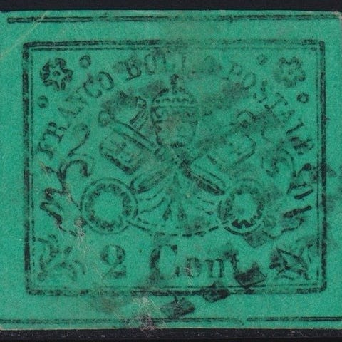 Italian antiikkivaltiot - Kirkkovaltio 1852/57 - I^ Em. 1 b. vihreä + 1 b. tumm