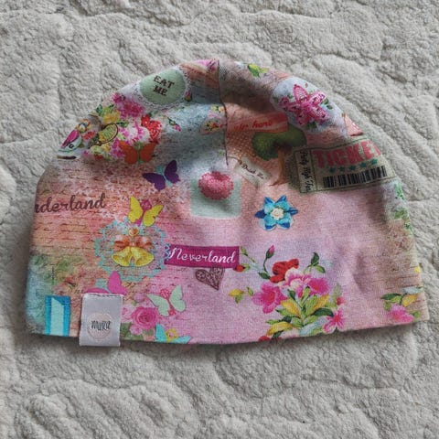 Helsingin kauppatorilta ostettu käsityöläisen tekemä vauvan hattu. Sopii hyvin kevääseen ja syksyyn. Pipossa musta fleecevuori. Päällyskangas trikoota paksumpaa kangasta. En tiedä kokoa mutta veikkaisin noin 5kk-2v