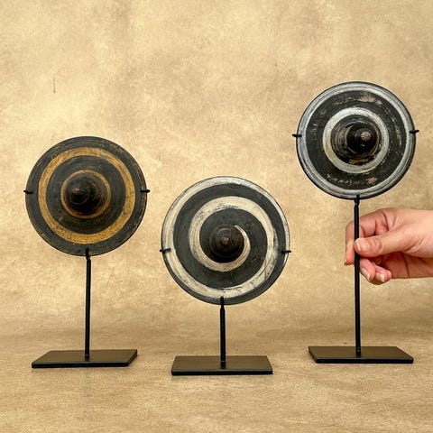 Kolmen puisen pyörivän lelun setti Lombokilta.Mukana räätälöidyt metallijalustat.Hyvin koristeellisia esineitä.Noin mitat, mukaan lukien jalusta.Spinning Top Set 1 : Korkeus 21 cm Leveys 6 cmSpinning Top Set 2 : Korkeus 19 cm Leveys 6 cmPyörivä toppi -setti 3: Korkeus 19 cm, leveys 9 cm.Paino : 1000 grHUOM:Yksi tai useampi kuva esittää tyylitellyn esityksen vastaavasta esineestä. Tarkat tiedot myytävästä esineestä löytyvät muista kuvista. Tyylitellyssä kuvassa olevat esineet eivät sisälly myyntiin.> MAINITTU PAINO SISÄLTÄÄ PAKKAUSMATERIAALIN.LähetysKohde lähetetään seurantanumerolla DHL Parcelin, DPD:n tai postNlin kautta. Seuranta päivittyy Catawiki-luettelossasi, kun pakettisi on jätetty postiin.Ole hyvä ja tarkista säännöllisesti välttääksesi pakettisi palautumisen meille, jolloin ostaja vastaa toisen lähetyksen toimituskuluista.Seurantaan Espanjaan ja Portugaliin käytä tätä linkkiä ja lisää Catawiki-erästäsi saatu seurantanumero.https://clientesparcel.dhl.es/LiveTracking/HomeME EMME YHDISTÄ TOIMITUKSIA!!!Jos sinulla on kysyttävää paketistasi, ota meihin yhteyttä Catawiki-viestipalvelun kautta. Pyrimme vastaamaan kolmessa työpäivässä.