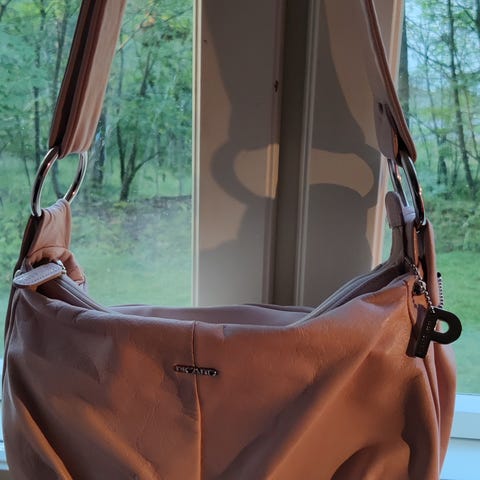 Kunto: käytetty. Nahassa käytön jälkeä ja kulumaa. Laukun sisällä musteen jälkiä (kynä vuotanut).