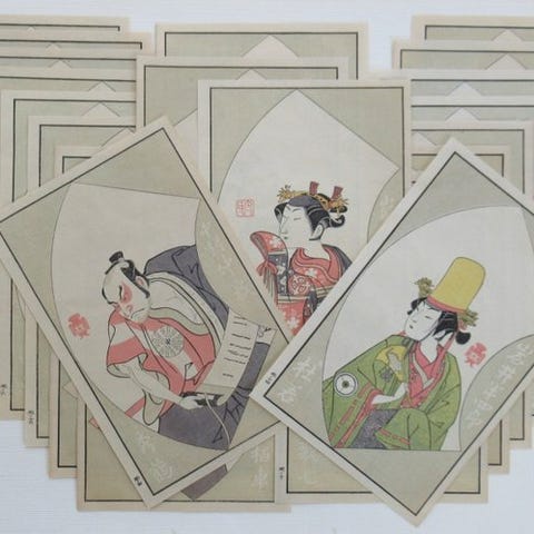 Myynnissä 12 erinlaista Japanin Edo-kauden kuvataulua.