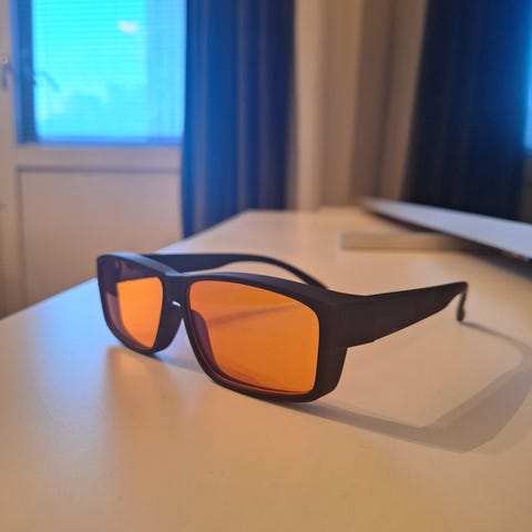Oranssi linssi on suunniteltu erityisesti iltakäyttöön: kun laitat ne päälle 2–4 tuntia ennen nukkumaanmenoa, melatoniini pääsee nousemaan normaalisti → uni tulee helpommin ja on syvempää. Moni käyttää näitä myös päivällä pitkien ruututuntien aikana, jolloin silmät eivät kuivu yhtä pahasti eivätkä kirvele.