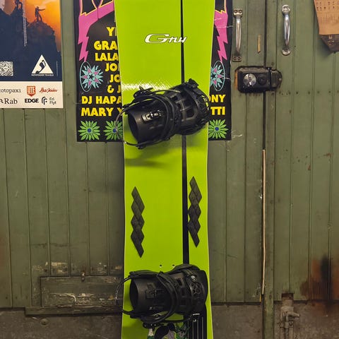 Atari by Rossignol Limited Edition lumilauta 155cm. Laudassa on kiinni punaiset Burtonin siteet, jotka on säädettävissä käyttäjän kokoon.