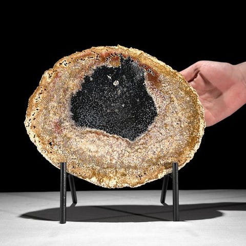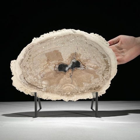 Upea pala muinaistunutta palmupuun juurta räätälöidyllä jalustalla.Kaunis viipale fossiilista palmupuun runkoa, jossa on upeita värisävyjä ja tyypillinen puhkeama. Kuoren näkyvyys on selkeä ulkopuolella, ja palmupuun tyypillinen muodostuma erottuu keskellä. Osan sisäosasta on geodeettisesti kiteytynyt. Viipale on erittäin kauniisti kiillotettu, mikä tekee yksityiskohdat selvästi näkyviksi.Noinmiten mitat - jalustan kanssa# Korkeus: 26 cm - Leveys: 27,5 cm, Viipaleen paksuus: 1,7 cmNoin mitat - jalustan huomioimattaKorkeus: 22 cm - Leveys: 27,5 cm, Viipaleen paksuus: 1,7 cmVastuuvapauslausekeOle hyvä ja huomioi, että yksi kuvista on otettu pimeässä studiosta, ja värit voivat vaihdella ympäristön mukaan.Paino, joka mainitaan, sisältää pakkausmateriaalin.LähetysKohde lähetetään seurantanumerolla DHL Parcelin, DPD:n tai postNlin kautta. Seuranta päivittyy Catawiki-luettelossasi, kun pakettisi on jätetty postiin.Ole hyvä ja tarkista säännöllisesti välttääksesi pakettisi palautumisen meille, jolloin ostaja vastaa toisen lähetyksen toimituskuluista.Seurantaan Espanjaan ja Portugaliin käytä tätä linkkiä ja lisää Catawiki-erästäsi saatu seurantanumero.https://clientesparcel.dhl.es/LiveTracking/HomeEMME YHDISTÄ TOIMITUKSIA!!!- Jos sinulla on kysyttävää paketistasi, ota yhteyttä meihin Catawiki-viestipalvelun kautta. Yritämme vastata kolmen työpäivän kuluessa.