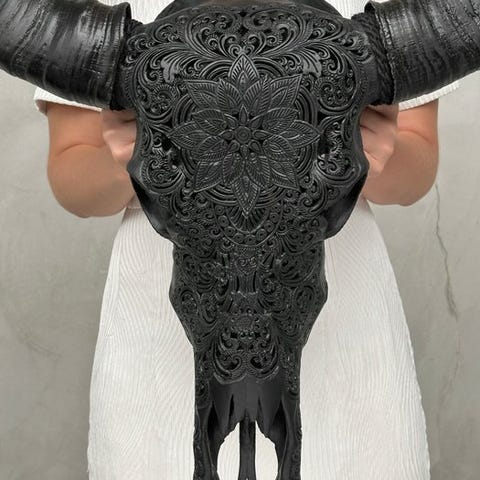 Suuri vesipuhveli-kallo, joka on kaiverrettu käsin lahjakkaan balilaisen käsityöläisen toimesta. Heidän isänsä ovat siirtäneet ikivanhan kaiverrustaidon pojilleen. Tämä kallo on täysin avattu kaiverruksella. Kaiverrus on poikkeuksellisen korkealaatuista.Kauniin kukka mandala -motiivin on kaiverrettu kalloon.Noinmiten mitatKorkeus: 72 cmLeveys: 75 cmHUOM:Olemme lisänneet kuvia käsityöläisistämme työssään antaaksemme kuvan siitä, millainen prosessi on kaiverratetun pään luominen.Paino, joka mainitaan, sisältää pakkausmateriaalin.VastuunrajoituksetKalloon on kiinnitetty kiristysnaru, jotta sen voi asentaa seinälle.Sarvet irrotetaan kuljetuksen ajaksi, ja ne on helppo kiinnittää uudelleen.Myös kallon yhteydessä on nyöri, jonka avulla sen voi kiinnittää seinälle.- Sarvet ovat aina laatikon pohjalla, kallon alla. Varmistathan, että poistat sarvet ennen pakkauksen hävittämistä.- Koska kyseessä on luonnollinen kallo, siinä saattaa olla joitakin luonnollisia pieniä halkeamia, uurteita tai puuttuvia hampaita. Tämä on normaalia. Katso kuvat viitteeksi.- Kallomme puhdistetaan ammattilaisvoimin, mutta joskus hampaissa voi esiintyä pieniä värimuutoksia. Tämä on luonnollista ja normaalia, eikä siihen voida paljoa vaikuttaa. Katso kuvat ohjeiden tueksi.LähetysKohde lähetetään seurantanumerolla DHL Parcelin, DPD:n tai postNlin kautta. Seuranta päivittyy Catawiki-luettelossasi, kun pakettisi on jätetty postiin.Ole hyvä ja tarkista säännöllisesti välttääksesi pakettisi palautumisen meille, jolloin ostaja vastaa toisen lähetyksen toimituskuluista.Seurantaan Espanjaan ja Portugaliin käytä tätä linkkiä ja lisää Catawiki-erästäsi saatu seurantanumero.https://clientesparcel.dhl.es/LiveTracking/HomeME EMME YHDISTÄ TOIMITUKSIA!!!Jos sinulla on kysyttävää paketistasi, ota meihin yhteyttä Catawiki-viestipalvelun kautta. Pyrimme vastaamaan kolmessa työpäivässä.