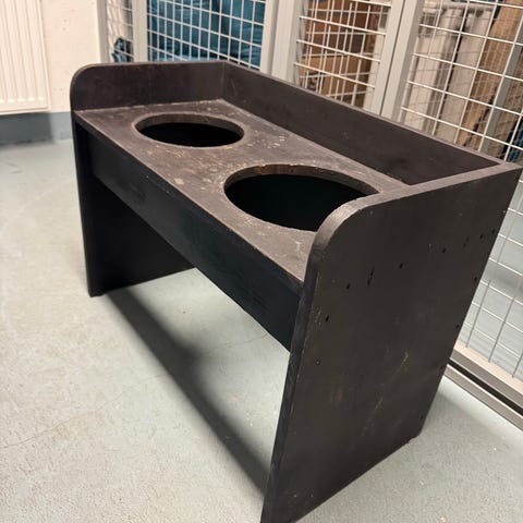 Puusta valmistettu koiran ruokakuppiteline