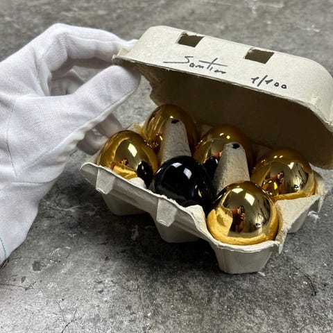 Santicri on osallistunut useisiin kansainvälisesti merkittäviin taidenäyttelyihin. Merkittävimpien joukossa hän esitteli teoksiaan vuonna 2022 arvostetussa Palazzo Grillo -rakennuksessa Genovassa, ja vuonna 2023 hän oli läsnä New Yorkin International Contemporary Furniture Fair (ICFF) -tapahtumassa, mikä lisäsi hänen näkyvyyttään sekä kansallisissa että kansainvälisissä yhteyksissä.Santicri on valittu vuoden 2024 myydyimmiksi taiteilijoiksi Artmayeurin, yhden arvostetuimmista taidealustoista, toimesta. Samana vuonna hänet on myös listattu Catawikin kolmen eniten haetun nimen joukkoon, mikä on lisääntyvän arvostuksen merkki hänen työtään kohtaan. Nämä tunnustukset korostavat Santicrin poikkeuksellista lahjakkuutta ja hänen kasvavaa näkyvyyttään nykytaiteen kentällä.Christian Mariani aka SanticriTekniikka: Pihka ja marmoripölyMitat: K40 x L13 x S7 cmUusiAitoustodistus - allekirjoitettu käsin.Open editionLimited edition Myyty loppuunTämä nykytaideteos määrittelee uudelleen arkipäivän, muuttaen siveltimen ja maalauksen taiteelliseksi ilmaisuksi. Realististen materiaalien valinta vangitsee poikkeuksellisen tarkasti tekstuurin, antaen esineille konkreettisen taiteellisen arvon. Seinälle ripustettuna ne muodostavat päivittäisen luovuuden symbolit, pakottaen uudelleen arvioimaan kauneutta usein huomaamatta jäävissä tavaroissa. Teos, joka kannustaa pohtimaan taiteen ja arkipäivän esineiden välistä suhdetta, korostaen jokaisen päivän piilossa olevaa kauneutta.Veistos voi olla ripustettuna seinälle yksinkertaisella naulalla tai tukeutua huonekaluun.Maalauksen allekirjoitus paljastaa taiteilijan nimen.VAKUUTETTU TOIMITUS!Taiteilija vakiinnutti asemansa vuonna 2024 yhdeksi kysytyimmistä nimistä Catawikissa, sijoittuen heti ikonien kuten Kawsin ja Banksyn jälkeen. Hänen taiteensa erottuu eksklusiivisessa kontekstissa, johon kuuluvat myös muut huippuluokan kategoriat, kuten Rolex, Lego, Louis Vuitton, Porsche, Eames, Macallan, Tintin, Cartier ja Pokémon. Hänet tunnustetaan lahjakkaaksi paitsi luovuuden arvon vuoksi, myös yhtenä vuoden lupaavimmista sijoituskohteista.Vuonna 1992 Maceratassa, Marchen alueella, syntynyt italialainen taiteilija loi uraa, joka maanmittauksen ja arkkitehtuurin opintojen kautta johdatti hänet yhteistyöhön hartsiveistosta tekevän taiteilijan kanssa. Siellä hänessä kehittyi kasvava tarve löytää itsensä ja päästää luovuutensa valloilleen.Hänen teoksiaan myydään ympäri maailmaa, ja hän tekee yhteistyötä gallerioiden kanssa Italiassa ja Euroopassa.Hänen taiteensa on laajasti arvostettua eikä sitä voi puuttua street artin, pop artin ja nykytaiteen keräilijöiden joukosta."Taiteen luokittelu ei ole koskaan helppoa. Yritän välittää sitä, mitä silmäni näkevät, tapaani nähdä ympärilläni oleva, ja työstän sen uudelleen muotoon, joka sopii hyvin nykyaikaan: vaikuttavaksi ja mieleenpainuvaksi."