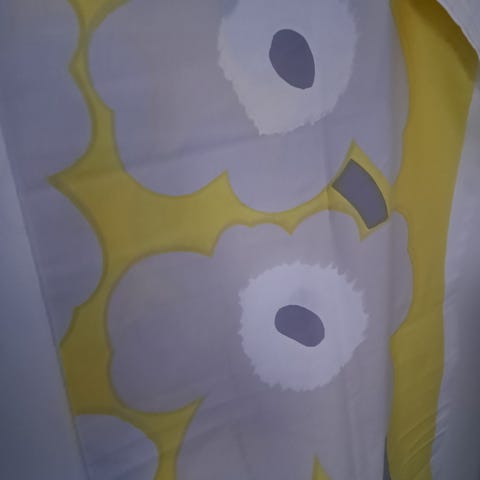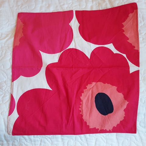 Myydään sininen Unikko huivi kangaspala, josta näppärästi ompelee noin 55cm x 55cm Unikko huivin.