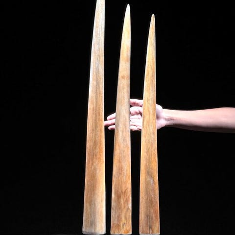 Pari sähkötorvea on kiinnitetty räätälöityyn jalustaan.Jäänyt Indonesiaan. Tällaisia laskuja käytettiin aseiden valmistukseen.Hartsi on käytetty täyttämään miekkakala.Todella koristeellinen esine.Noin mitat, mukaan lukien jalusta.Tusk 1: 76 cmTusk 2: 72 cmVastuunrajoitukset- Koska kyseessä on luonnollinen syöksyhammas, siinä saattaa olla pieniä luonnollisia halkeamia ja rakoja. Tämä on normaalia. Katso kuvia.- Syöksyhampaat puhdistetaan ammattimaisesti, mutta joskus pieniä värimuutoksia esiintyy silti. Tämä on luonnollista ja normaalia, emmekä voi tehdä asialle paljoakaan. Katso kuvia.Yksi tai useampi kuva esittää tyyliteltyä esinettä. Tarkat tiedot myytävästä esineestä löytyvät muista kuvista. Tyylitellyssä kuvassa olevat esineet eivät sisälly myyntiin.Paino, joka mainitaan, sisältää pakkausmateriaalin.LähetyksetTuote lähetetään seurantanumerolla DHL Parcelin, DPD:n tai postNl:n kautta. Seuranta päivittyy Catawiki-luettelossasi, kun pakettisi on jätetty postiin.Tarkista säännöllisesti välttääksesi pakettisi palauttamisen meille, jolloin ostaja vastaa toisen lähetyksen toimituskuluista.-Espanjaan ja Portugaliin toimitettavaa seurantaa varten käytä tätä linkkiä ja lisää seurantanumero Catawiki-erästäsi.https://clientesparcel.dhl.es/LiveTracking/HomeME EMME YHDISTÄ TOIMITUKSIA!!!-Jos sinulla on kysyttävää lähetyksestäsi, ota meihin yhteyttä Catawiki-viestipalvelun kautta. Pyrimme vastaamaan kolmeen työpäivään kuluessa.