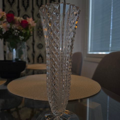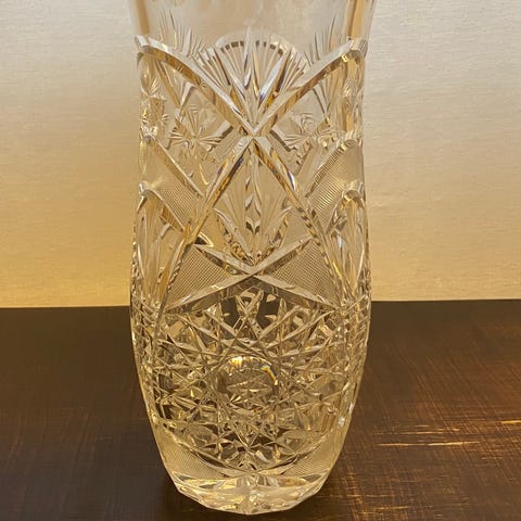 Kaunis ja painava Kristalli maljakko. Korkeus 30cm, halkaisija 17cm.
