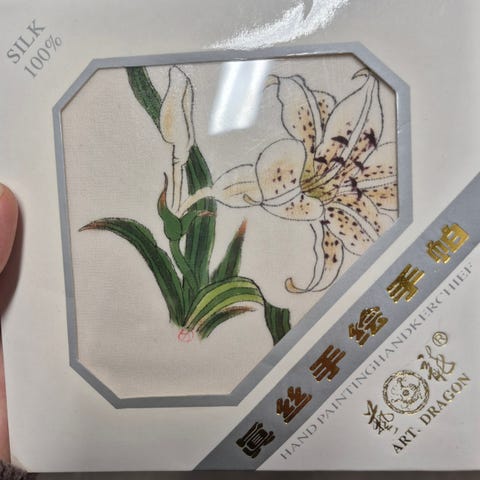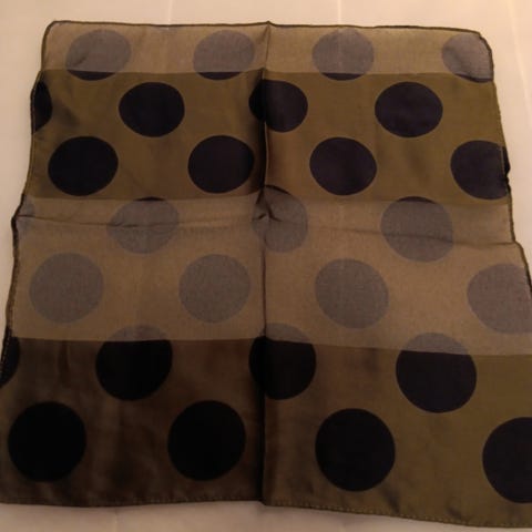 Tässä moitteeton, mutta silitystä vaille oleva 100% silkkiä oleva taskuliina.