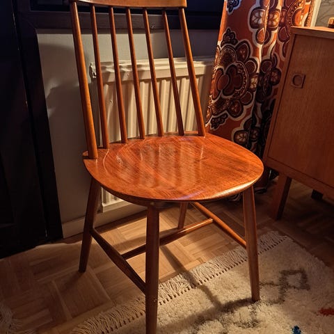 Myytävänä vanha valkoinen pinnatuoli. Kestää istua. Myydään tarpeettomana. Hinta 10e/tarjous. Löytyy Tikkamäestä.