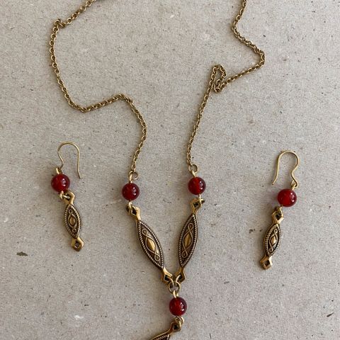 Kalevala korun Metsä-korusetti: kaulakoru ja korvakorut. Pronssia.