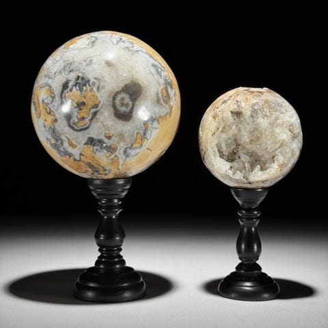 Upea maligano jasper -sydämen muotoinen ja kvartsikristalliryhmä kustomoiduilla jalustoilla.Maligano jasper on erityinen jaspiksen tyyppi, jota esiintyy Indonesiassa ja joka muodostuu muinaisten tulivuoren kuumien lähteiden alueilla. Maligano tunnetaan kontrastisista lämpimistä sävyistään, kuten sinisen ja harmaan eri sävyistä, sekä upeista breksiittisistä, eli rikkoutuneista ja parantuneista, kuvioistaan, sekä hauskoista dendriittisistä kuvioistaan, jotka usein muistuttavat jokimaisemia, joissa on pieniä pensaita vierellä solisevaa jokea.Kaunis kristallikimppu, joka koostuu lukemattomista kristallipisteistä, jotka nousevat matriisista joka suunnasta, luoden upeita valojen leikkejä.Asennettuna räätälöityyn mustaan teräsalustaan teräsrungolla, se esittäytyy erittäin eleganttina esineenä, joka voidaan sijoittaa mihin tahansa kodin tai toimiston nurkkaan.Noin mitat, mukaan lukien jalusta.# Maligano Jasper Heart : Korkeus : 22 cm, Leveys : 17.5 cm# Kvartsikristalliryhmä : Korkeus: 19 cm, Leveys: 9 cmVastuuvapautukset:Ole hyvä ja huomaa, että nämä kuvat on otettu pimeässä studiolla; värit voivat vaihdella ympäristön mukaan.Yksi tai useampi kuva esittää tyylitellyn esityksen vastaavasta esineestä. Tarkat tiedot myytävästä esineestä löytyvät muista kuvista. Tyylitellyssä kuvassa olevat esineet eivät sisälly myyntiin.> MAINITTU PAINO SISÄLTÄÄ PAKKAUSMATERIAALIN.LähetysKohde lähetetään seurantanumerolla DHL Parcelin, DPD:n tai postNlin kautta. Seuranta päivittyy Catawiki-luettelossasi, kun pakettisi on jätetty postiin.Ole hyvä ja tarkista säännöllisesti välttääksesi pakettisi palautumisen meille, jolloin ostaja vastaa toisen lähetyksen toimituskuluista.Seurantaan Espanjaan ja Portugaliin käytä tätä linkkiä ja lisää Catawiki-erästäsi saatu seurantanumero.https://clientesparcel.dhl.es/LiveTracking/HomeEMME YHDISTÄ TOIMITUKSIA!!!- Jos sinulla on kysyttävää paketistasi, ota yhteyttä meihin Catawiki-viestipalvelun kautta. Yritämme vastata kolmen työpäivän kuluessa.