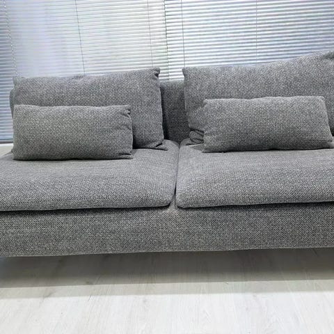 Sohva on hyvässä kunnossa. Päälliset juuri pesty. Päälliset ovat irrotettavat runko myöden. Mitat Leveys 189cm, syvyys 98 cm. Väri gunnared keskiharmaa. Eläintaloudesta.