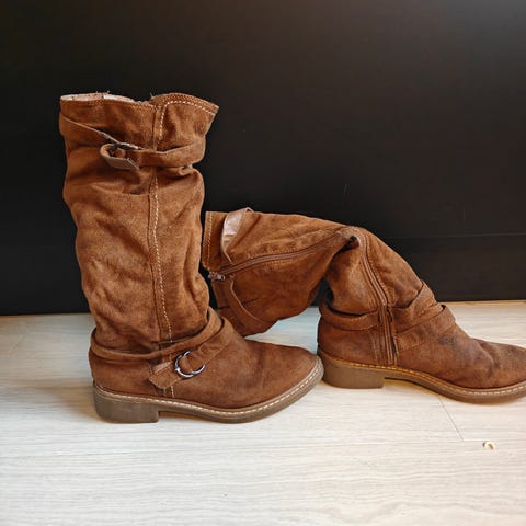 Myydään todella vähällä käytöllä olleet mokkasaappaat. Sivuilla vetoketjut. Korko 9,50cm. Saa tulla Jääliin sovittamaan ennen ostopäätöstä. Vain haku, en lähetä. Kissatalous ja myynnissä muuallakin.