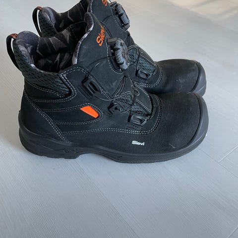 Sievi Cobra turvakengät, koko 42. Väriltään mustat, keltaisilla yksityiskohdilla kitkapohjassa. Kengissä on nauhaton boa kiristysmekanismi ja vahvistettu kärki. Pohjassa karkea kuviointi, joka on suunniteltu tarjoamaan pitoa erilaisilla alustoilla. Sopivat työ- ja suojajalkineiksi ympäristöihin, joissa tarvitaan turvakärjellisiä kenkiä ja pitävää pohjaa. Uudet käyttämättömät.