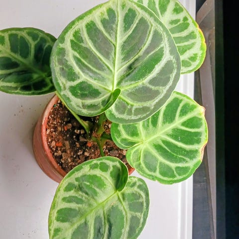 Asuu huoneilmassa, aroidmixissä missä on tree fern fiberia. Neliö ruukku ei kuulu hintaan, siirrän läpinäkyvään pyöreään ruukkuun.