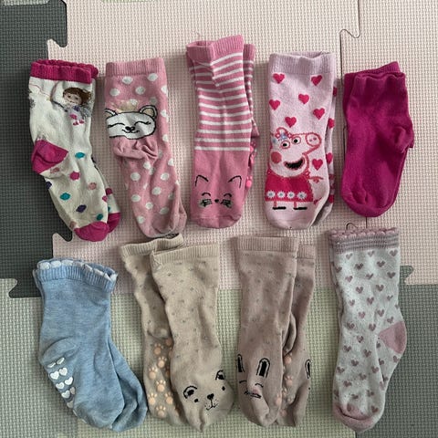 Paksuja liukuestepohjaisia sukkia jotka olleet yhdellä hetken käytössä. Koko 23/26. Hinta kaikista yhteensä. Nouto Ylämyllyltä. Postit ostajalle. Koiratalous. MMM.