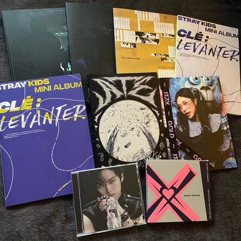 Myydään kuvien mukaisia kpop-albumeja. Kaikkien muiden paitsi NCT:n albumien mukana tulee kuvakortit. Jokaisessa albumissa on kuvakirja ja CD-levy. Stray kids:n ATE-albumin mukana tulee juliste. Kaikki albumit hyvässä kunnossa lukuun ottamatta vaurioita Stray kids:n violetissa Noeasy-albumissa ja Miroh-albumissa. Nouto Helsingistä, Espoosta tai Vantaalta.