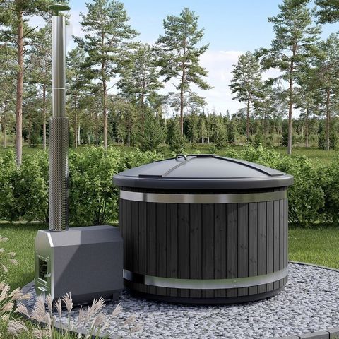 Rosterikamiina 2 m piipulla sekä kipinähatulla ja kuumuussuojalla.