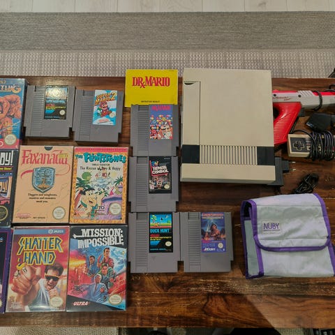 Kattava NES -kokonaisuus, sisältäen useita konsoleita, ohjaimia, Zapper-valopistoolin sekä laajan kokoelman klassisia NES-pelejä. Erinomainen setti keräilijälle tai retroharrastajalle.