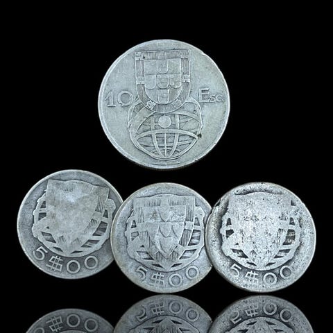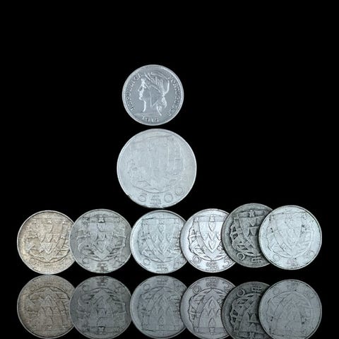 Portugali. 10 Centavos + 2 x 5 Escudos + 4 x 2.50 Escudos, prata (30 g) ()